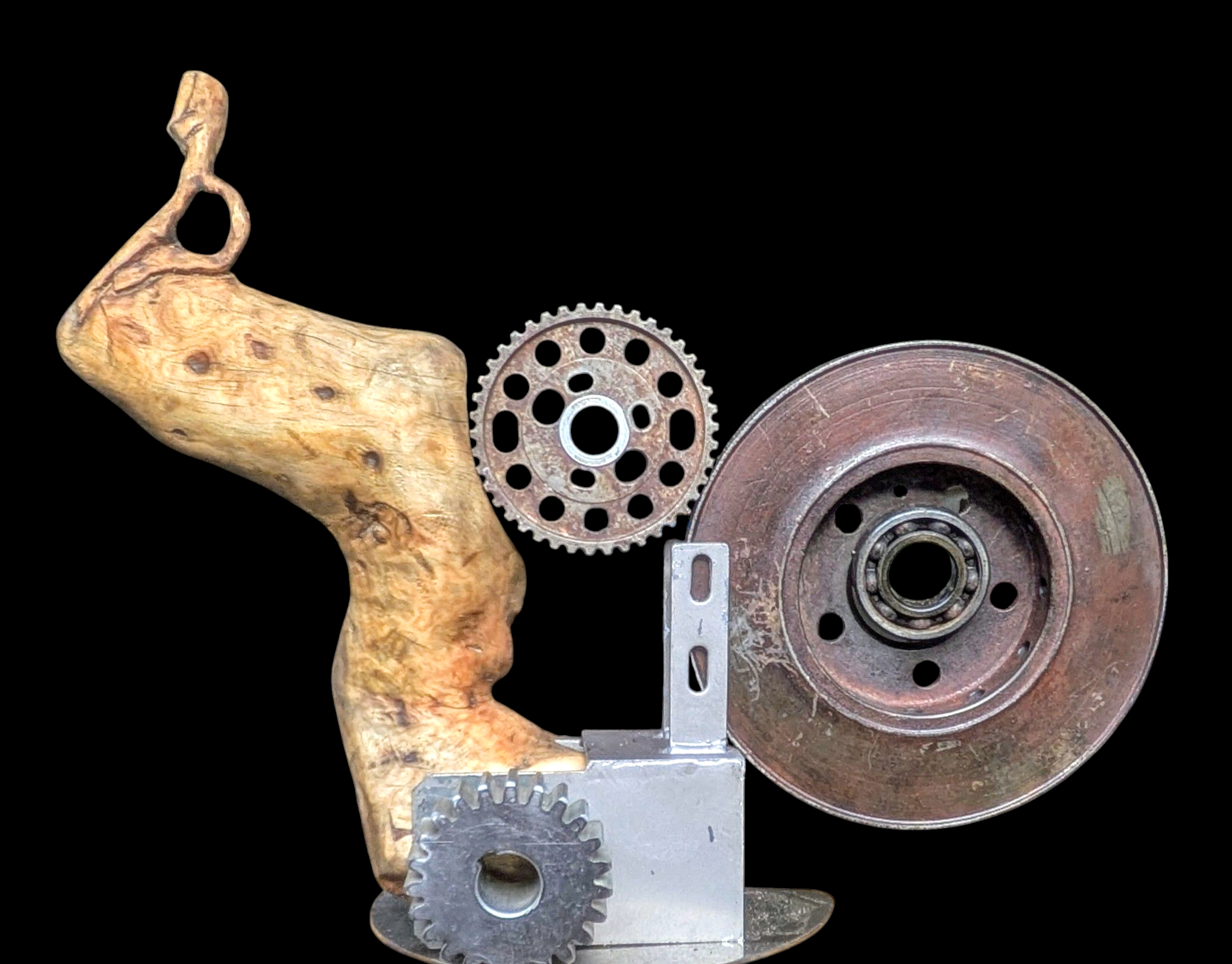 Ferrum es una colección poderosa que combina el arte con la fuerza y el carácter del metal reciclado de chatarrería. En estas esculturas, piezas industriales olvidadas como tuercas, tornillos y fragmentos metálicos encuentran nueva vida. Cada obra es una fusión de lo rústico con lo creativo, donde lo funcional se transforma en expresión artística. Ferrum celebra la capacidad de transformación del metal, dándole un valor estético a elementos que alguna vez fueron descartados. Las formas resultantes son un homenaje al reciclaje y a la reutilización, destacando la belleza oculta en lo que una vez fue desechado.