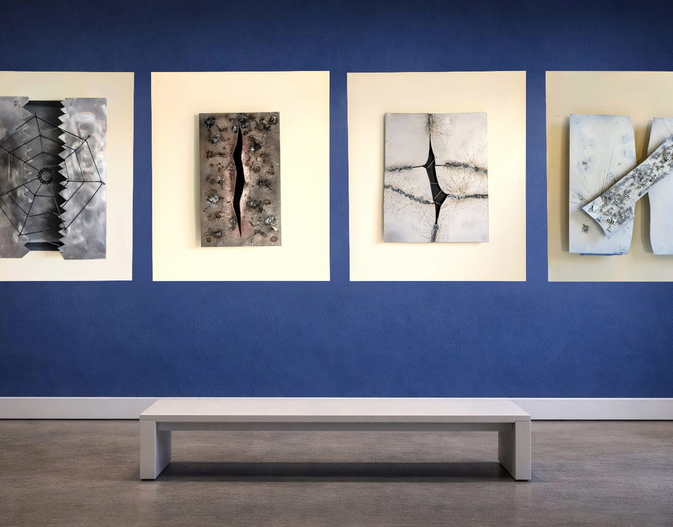 El proyecto se articula en cuatro conjuntos complementarios:. . Antecedentes.La escultura Genocidio. • Un tríptico central (240 × 100 cm total) que narra la secuencia temporal del conflicto: desde la tensión previa hasta el estallido y la convivencia con las heridas abiertas. • Quince piezas documentales (20 × 20 cm cada una) vinculadas a coordenadas geográficas específicas de Gaza y Ucrania, territorios actualmente devastados por conflictos armados.